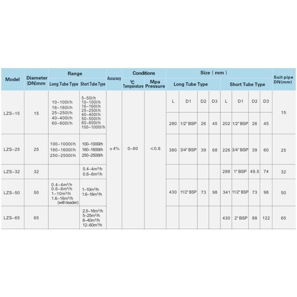 LZS-15 60-600 lt/h Plastik Tüplü Debimetre